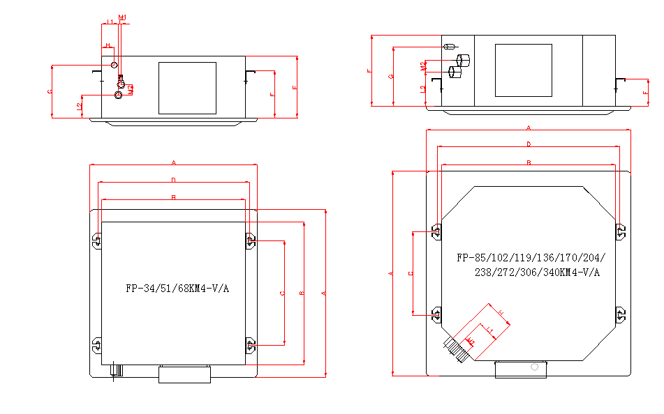 二管制四出風卡式風機盤管A系列